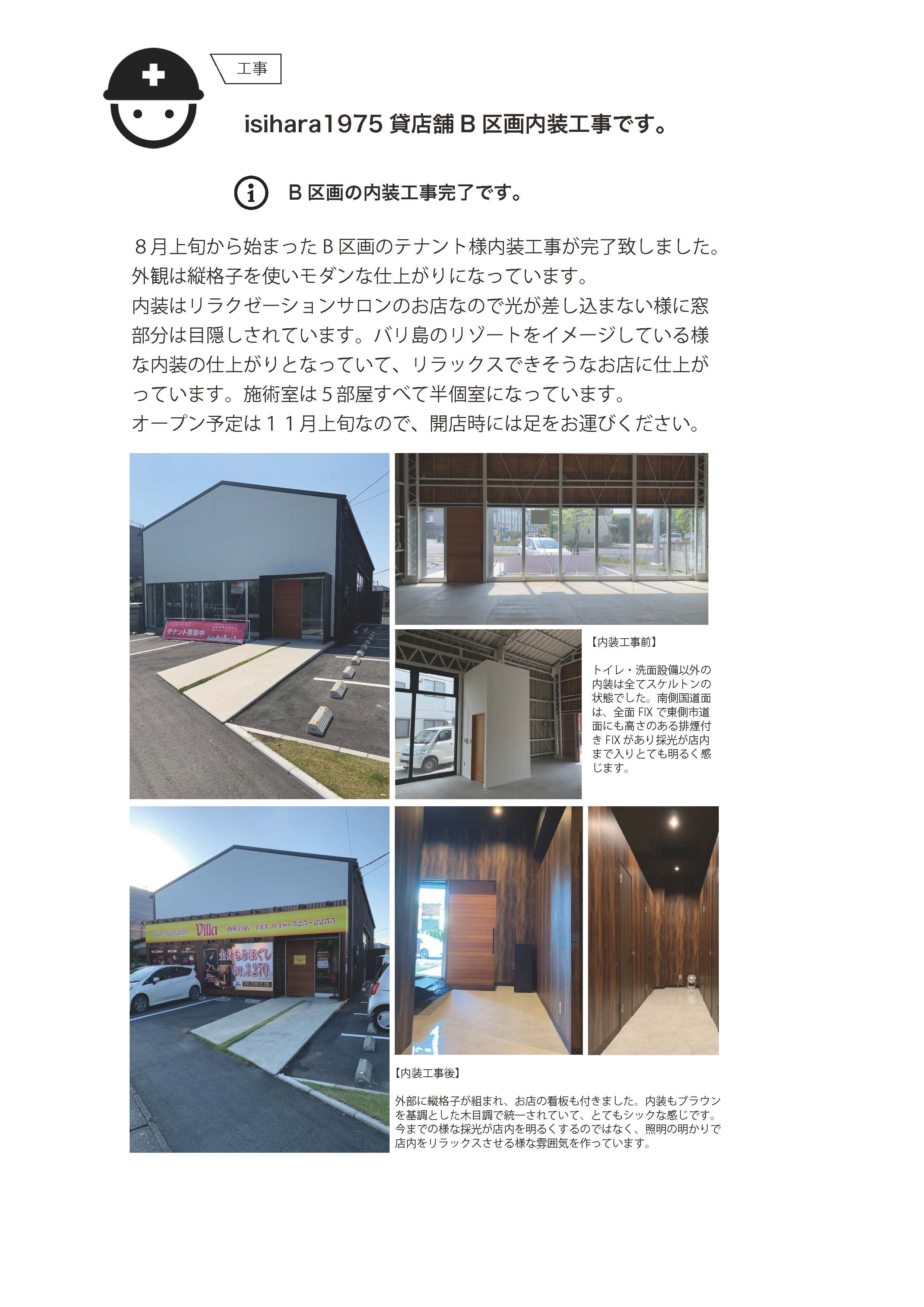 *isihara1975貸店舗B区画テナント工事が完了です。