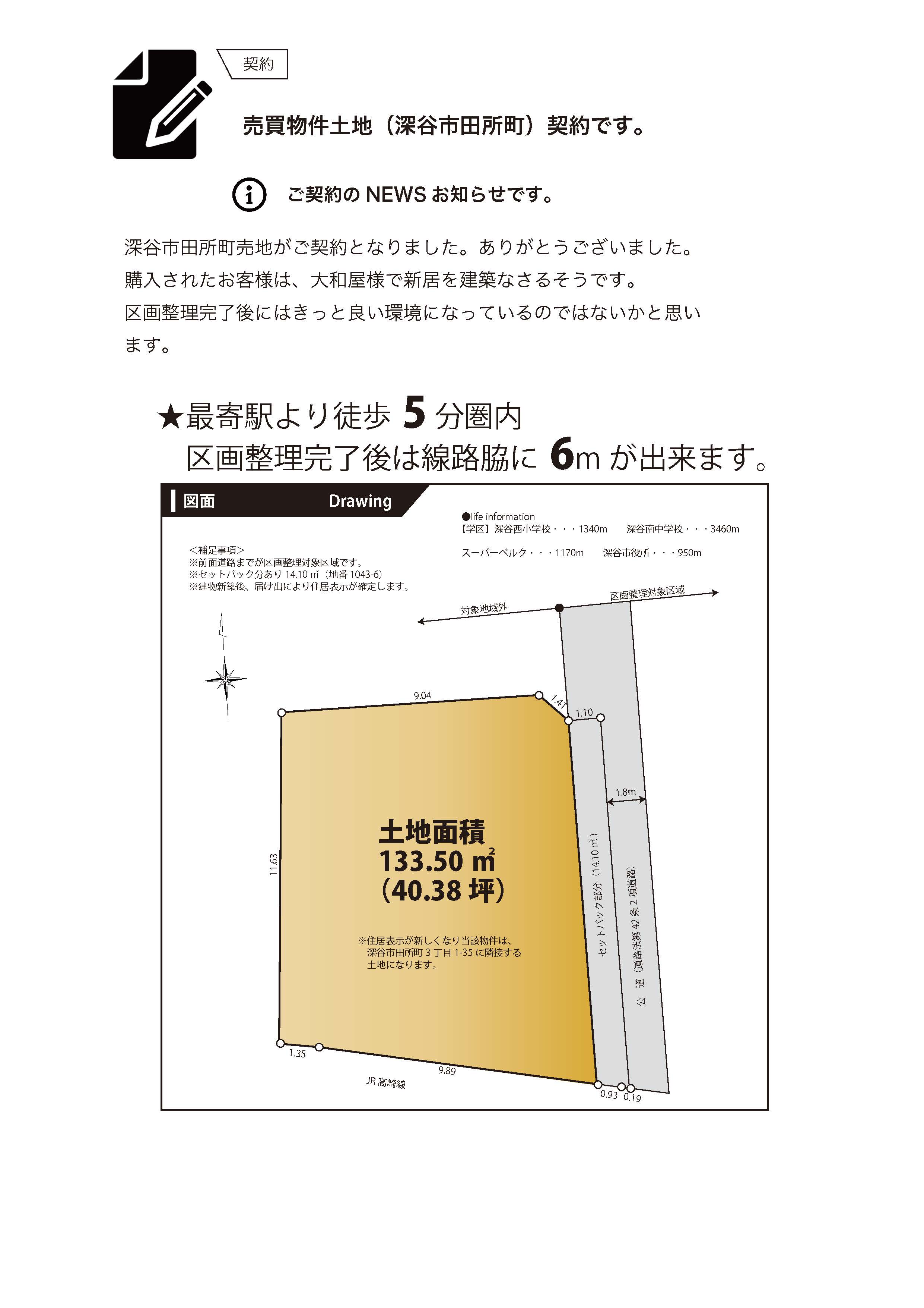 *深谷市田所町売地ご契約のお知らせです。