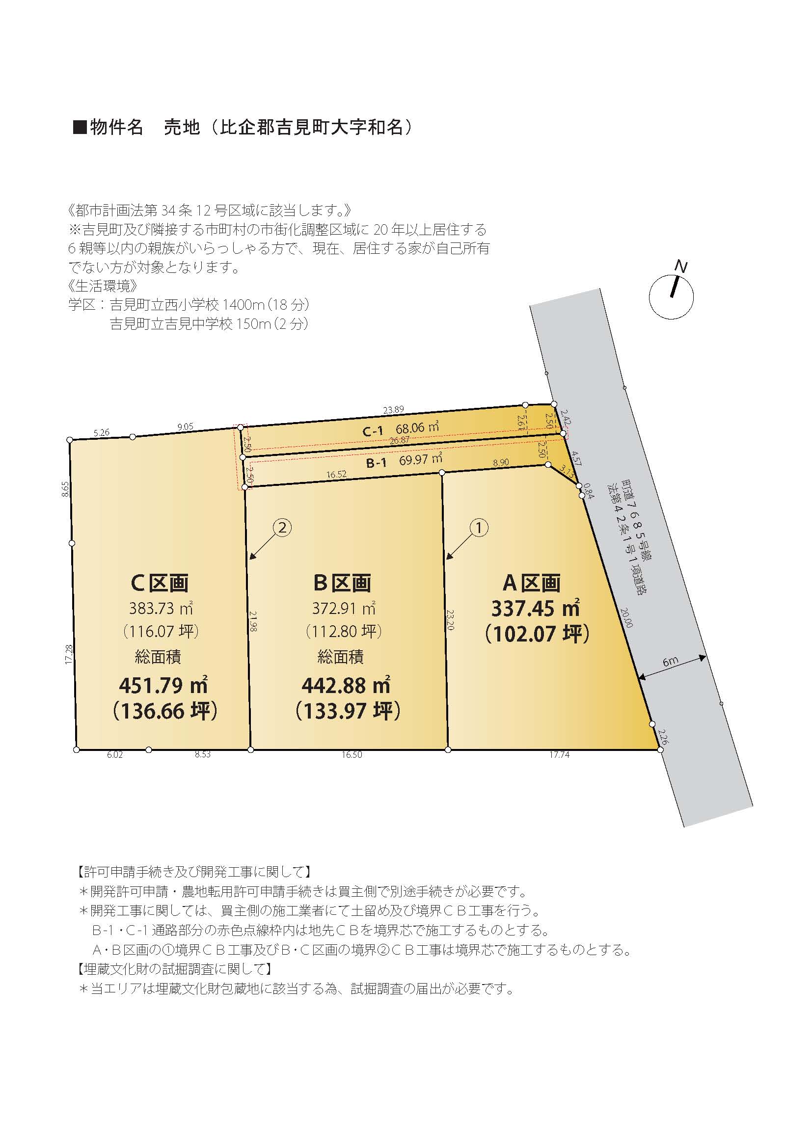 - C区画:451.79㎡(136.66坪)通路部分68.06㎡含む